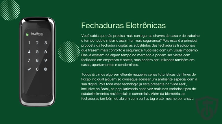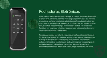 Fechaduras com abertura via biometria, senha ou tag, compatível com sistemas de automação.