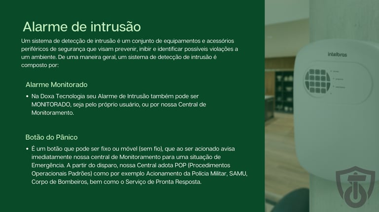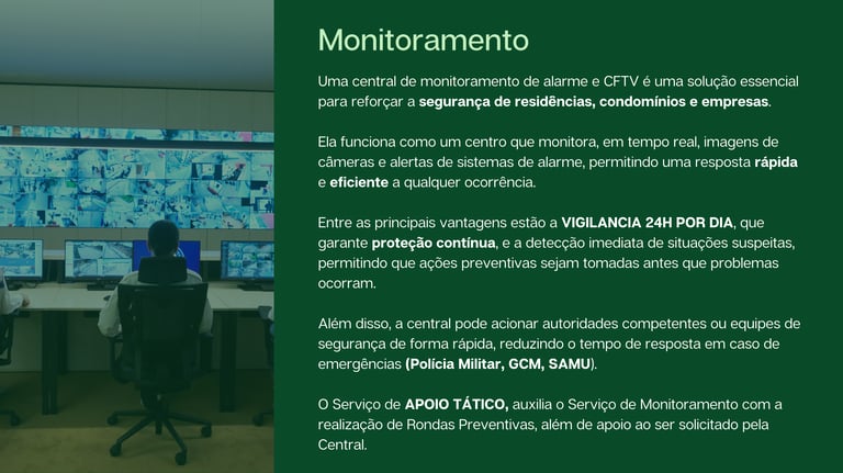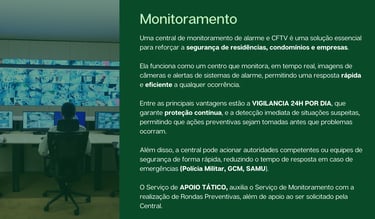 Com opções de Monitoramento por nossa Central ou pelo próprio Cliente via aplicativo.